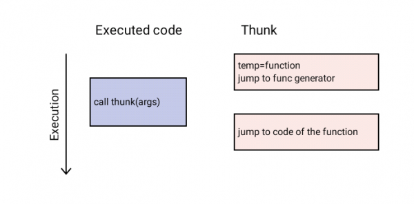 The function thunk for lazy basic block versioning redirects to a machine code generator of a basic block version or to already-generated machine code of that version. A function call also passes an identifier of the properties of call arguments through some register that is not saved by a called function according to the application binary interface (ABI) used.