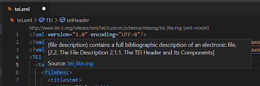 Hover based on RelaxNG rng shows the documentation in Figure 4: