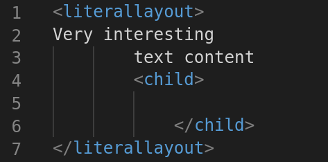 Method #1: Figure 7 shows literallayout in the list of default elements where whitespaces will be preserved.