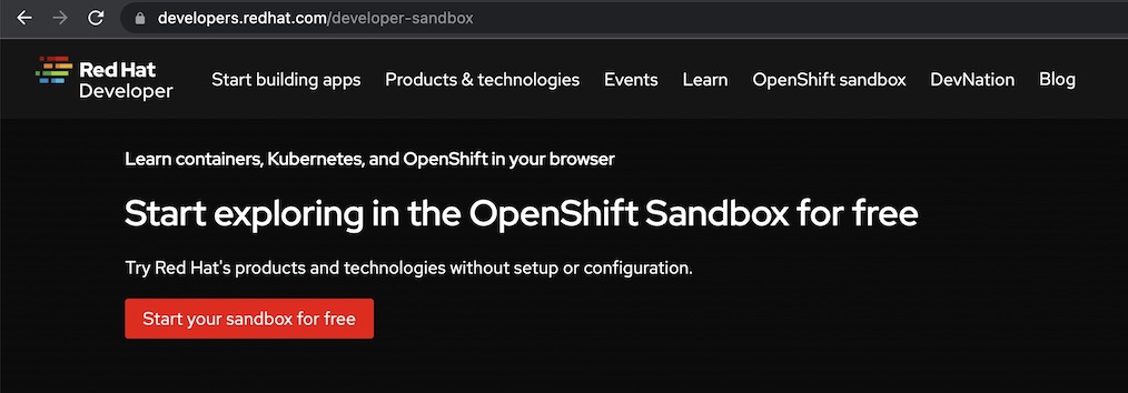 Red Hat Developer has many labs that you can easily access through your web browser. The Developer Sandbox for Red Hat OpenShift lets you experiment with building and deploying cloud-native applications in a real OpenShift environment using only your web browser.