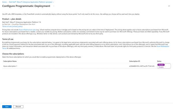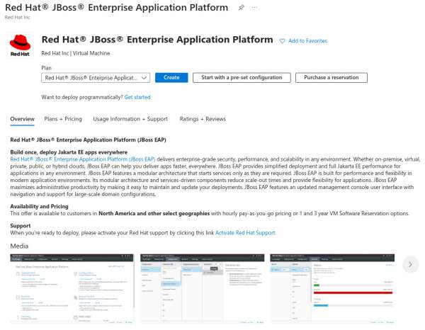 Before you can use this marketplace offer, you must complete the software plan form. You can access the JBoss EAP offer from the following links depending on your region.