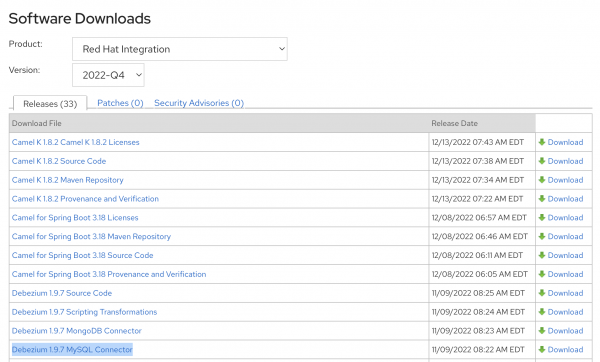 First of all, you will need your database plugin (i.e., SQL Server or MySQL) from the download page. Figure 1 illustrates the Red Hat software downloads page.