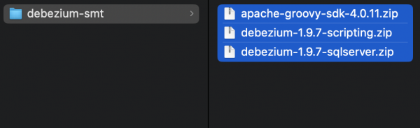 Go to the debezium-scripting folder and copy the debezium-scripting-1.9.7.Final...jar and place it inside the debezium-connector-sqlserver folder.