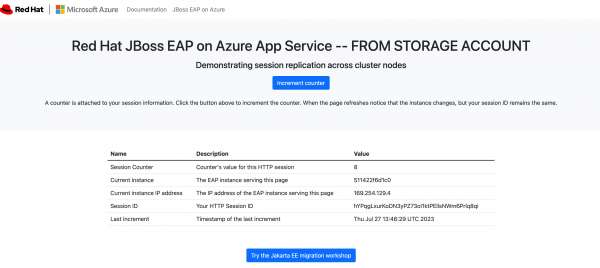 In this tutorial, we will go through the steps required to deploy a sample session replication application to a three-node JBoss EAP cluster on Azure App Service: