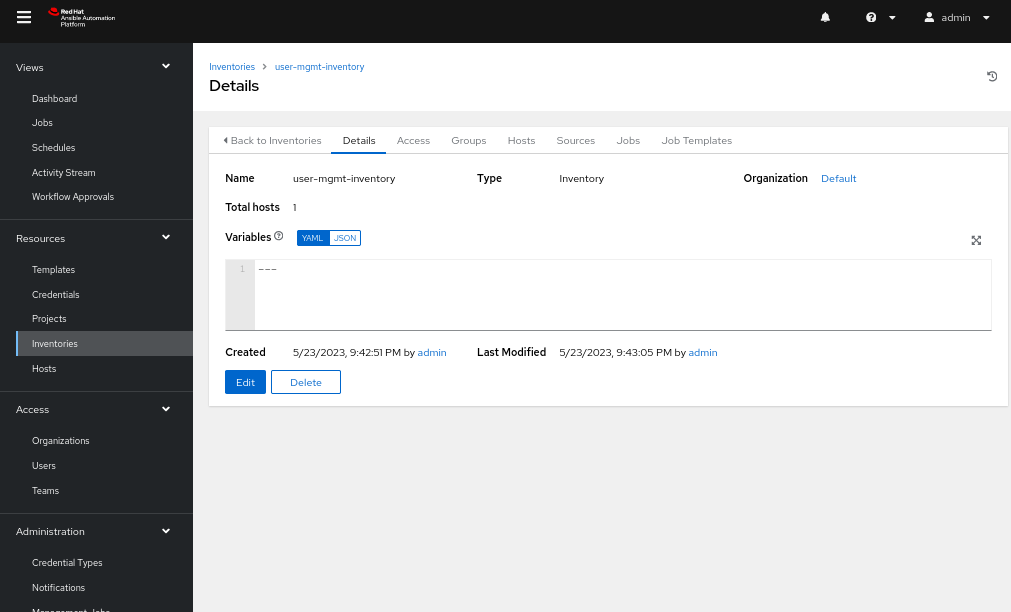 - Head back to the inventory edit page and navigate to the Hosts tab.
