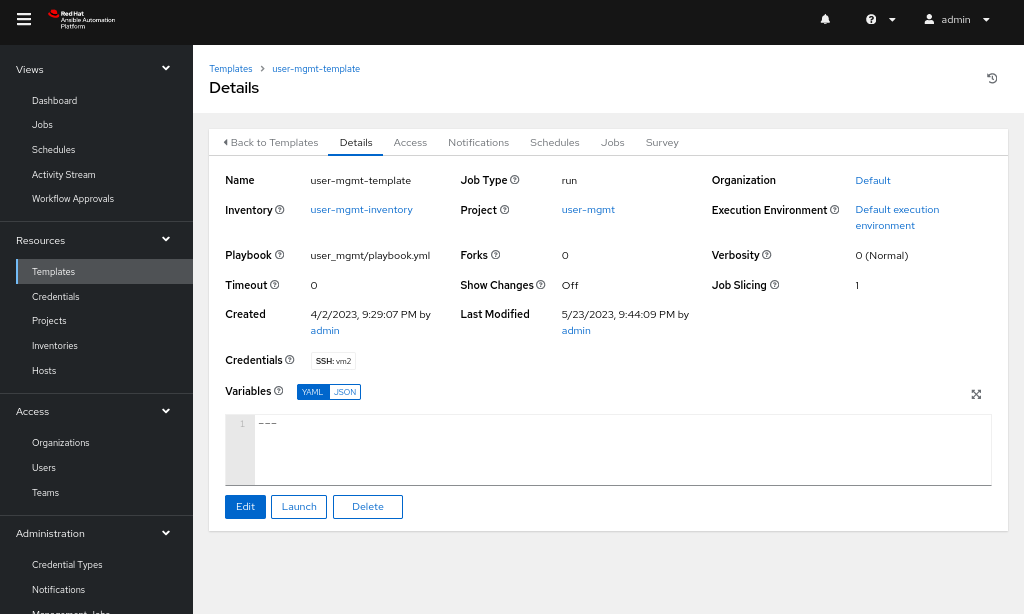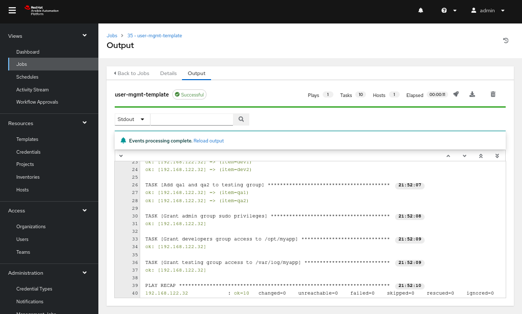 After the template has been created, you can launch it, and the job will be visible under the Jobs tab, as shown in Figure 6.