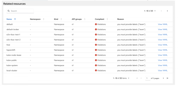 ns-must-have-teampolicy template. - Notice that the Related resources section table contains all the namespaces that failed, as shown in Figure 4.
