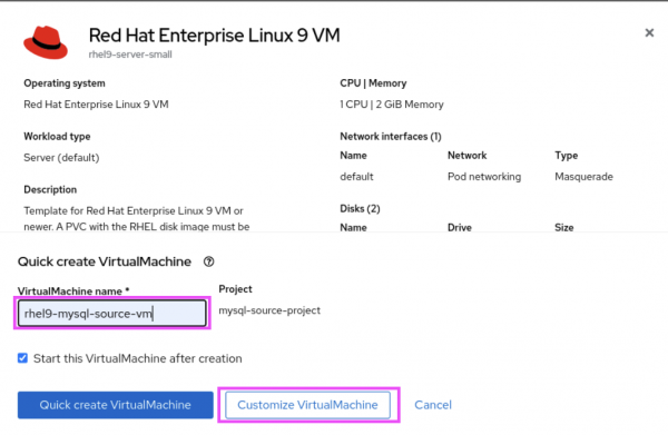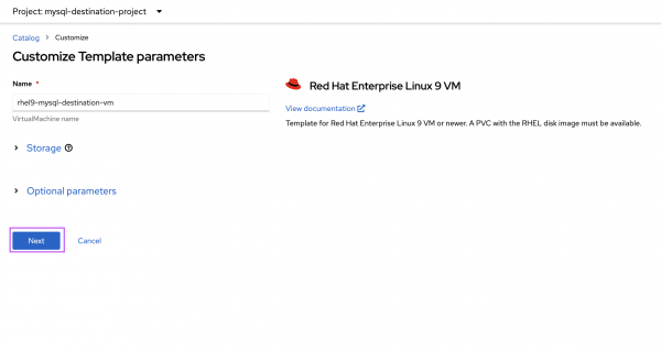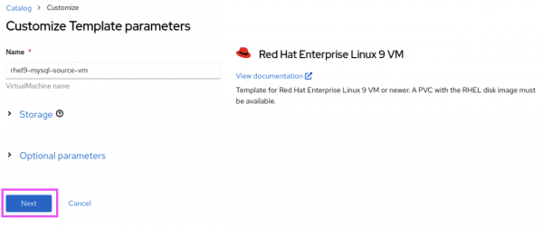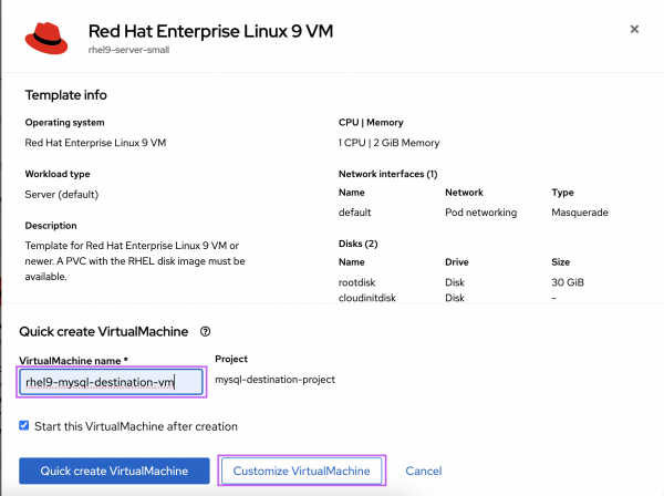 - Create source VM leveraging the Red Hat Enterprise Linux 9 VM Template (Figure 3).