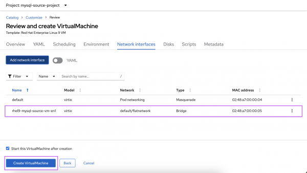 mysql-server.conf:Note: 192.168.3.106 is the IP address of the additional interface added to the MySQL source VM.