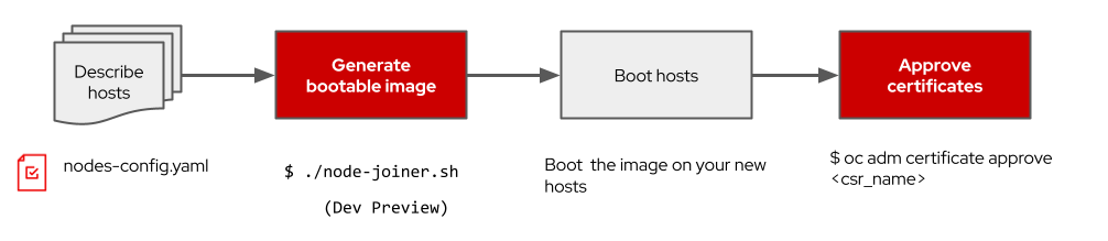 Adding nodes to Red Hat OpenShift clusters on-premises is a laborious and sometimes complex endeavor. With various methods available, each with different levels of automation, users often find themselves navigating through complex and even unsupported solutions, leading to a less-than-ideal user experience.