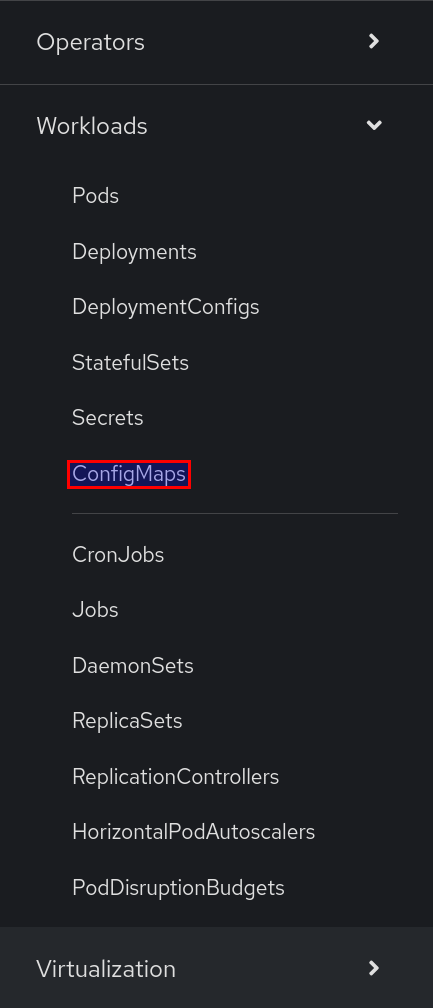 #Insert here your commands to perform customizationsTo create the ConfigMap, you need to navigate to Workloads → ConfigMaps, as shown in Figure 17.