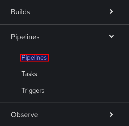 The next step is to set up the PipelineRun. This will trigger a set of task that will generate our Windows 11 golden image. In the left menu, go to Pipelines section and Pipelines subsection as shown in Figure 4.