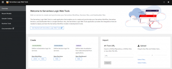 kn-workflow create --name my-projectkn-workflow runThe second command (to be executed in your project folder in the first step) will start a workflow service (using Podman/Docker) for the workflow in your project. You can immediately access the runtime tools on this service to start your workflow or look at the status of running instances. The following video shows the getting started experience.