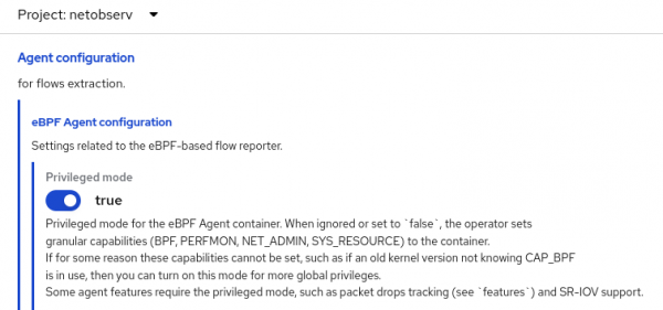 Network Observability 1.7 supports all three scenarios when privileged mode is set to true in the FlowCollector resource. Click > to the right of the text to open up Agent configuration and eBPF Agent configuration (Figure 3).