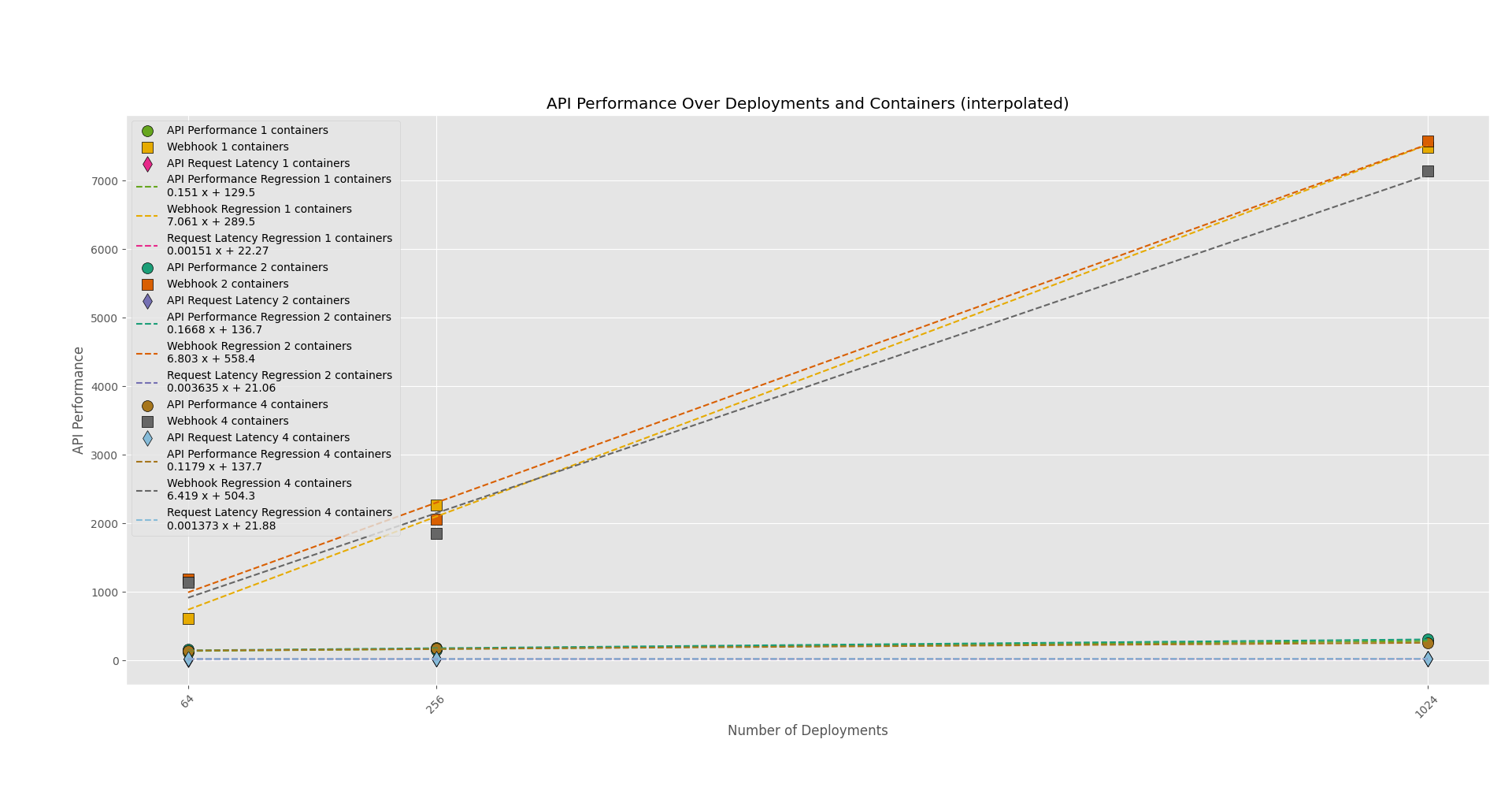 To derive the resource request numbers that are present in the documentation, I first generated the graphs seen in the Results section using Python. It was also able to generate a linear regression equation for each test step, and I refitted and used those equations to calculate the resource request numbers.