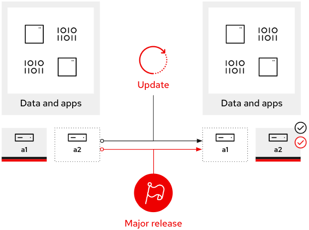 | Updates | Package update (dnf update) | Image update (bootc upgrade) |