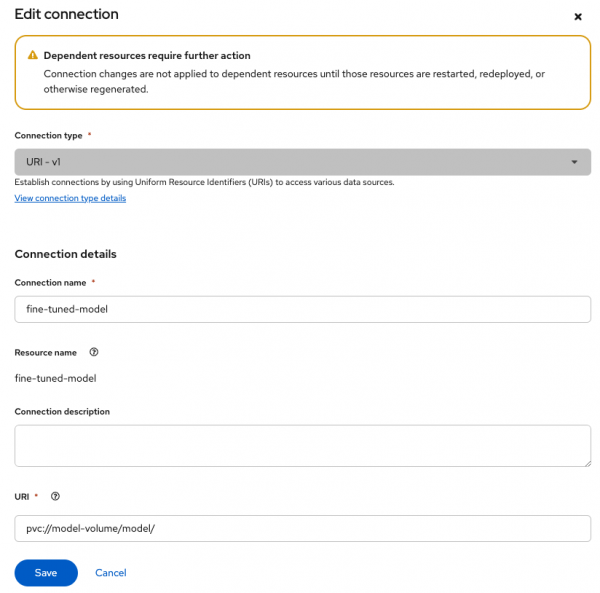 URI - v1as the Connection type and setpvc://model-volume/model/as the URI (Figure 2).