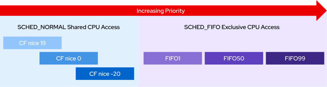 The image in Figure 1 illustrates the relative process priorities within and between SCHED_NORMAL and SCHED_FIFO.