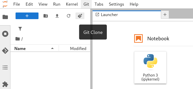 The last thing we need to do for this step is to connect to the Jupyter notebook. Log in and click the Git Clone button on the top left corner, then pull the demo repo, as shown in Figure 2.