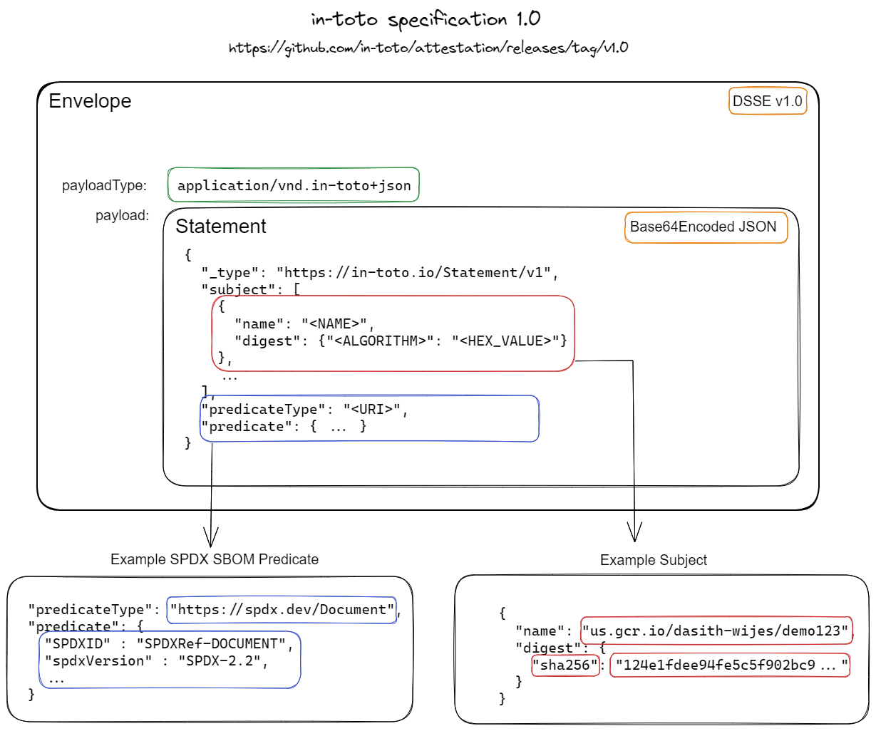 The in-toto Attestation Framework Spec documentation is great. Let’s look at an image taken directly from it (Figure 1).