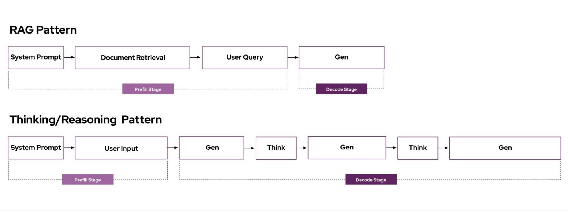 - RAG has long inputs—prompt and retrieved docs—and short generated outputs.