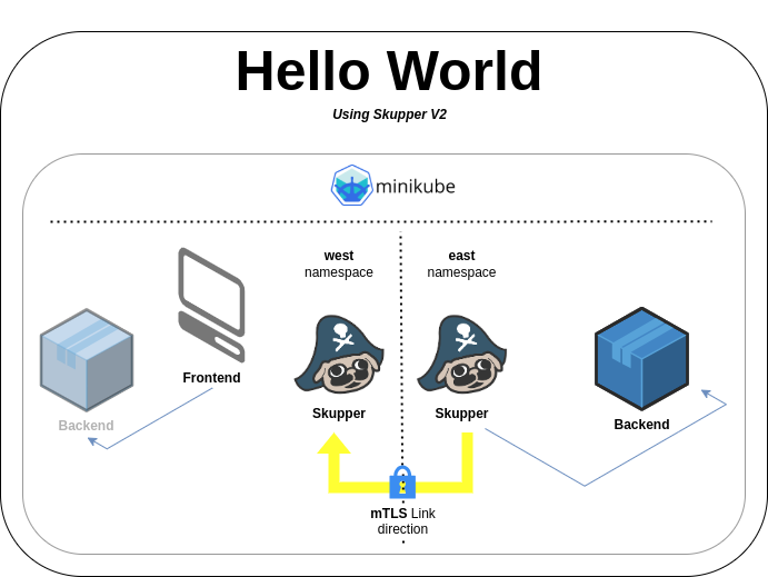 In order to demonstrate its power, we are going to create a VAN that connects a simple front-end application that runs on a local minikube cluster with a back-end microservice running on another namespace within the same minikube cluster.