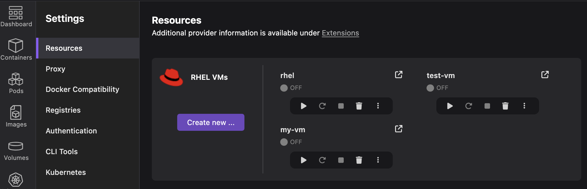 The RHEL VMs extension enables you to create, manage, and seamlessly connect to pre-configured RHEL virtual machines (VMs) directly through Podman Desktop's intuitive graphical user interface and integrated terminal. This extension reflects Red Hat's commitment to improving cross-platform RHEL access for development and testing, promising increased productivity and a more consistent experience.