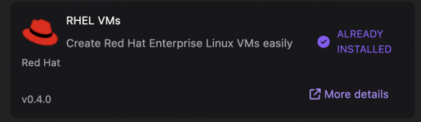 The RHEL VMs extension streamlines RHEL image installation by providing pre-configured downloads from the Red Hat repository. Accessing these images requires a Red Hat account, so you must also install the Red Hat Authentication extension.