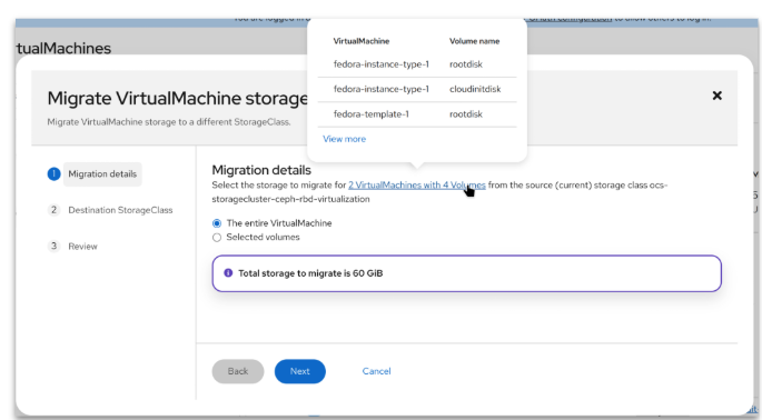Based on customer feedback, OpenShift 4.19 introduces the capability to migrate multiple virtual machines simultaneously between different storage classes (Figure 2). Previously, this functionality was limited to single VMs.