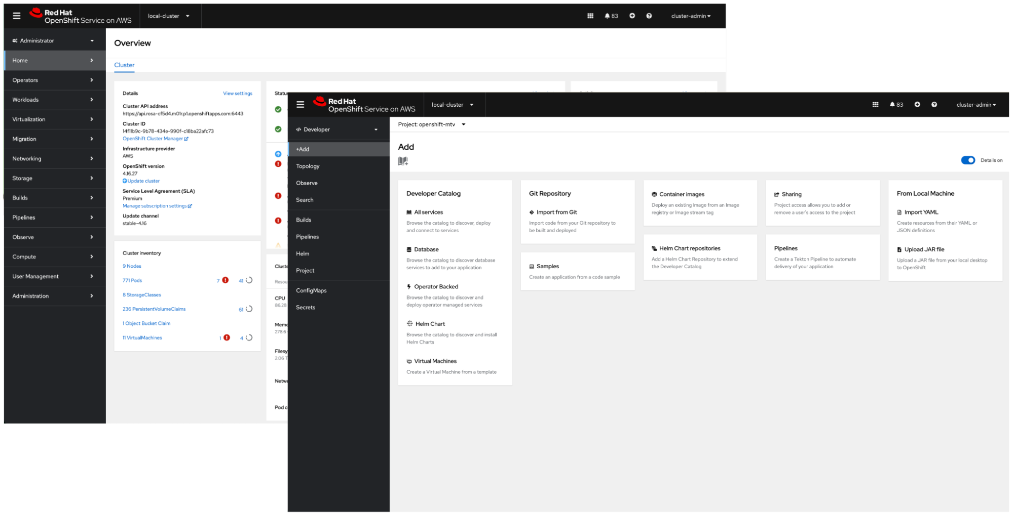 These changes reduce unnecessary friction in the console and better support users who don’t fit neatly into just one persona. While the Developer perspective is still available as an option for those who prefer a more focused view, we expect that many will find the unified perspective more efficient. Additionally, our new Red Hat Developer Hub offering is designed to better meet the needs of developer-centric users.
