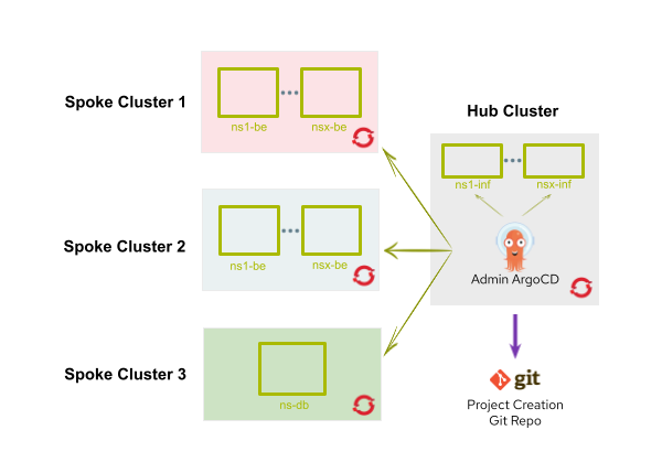 Whenever the admin Argo CD instance creates a new namespace (besides the previously mentioned objects configuration), these two additional tasks will happen: