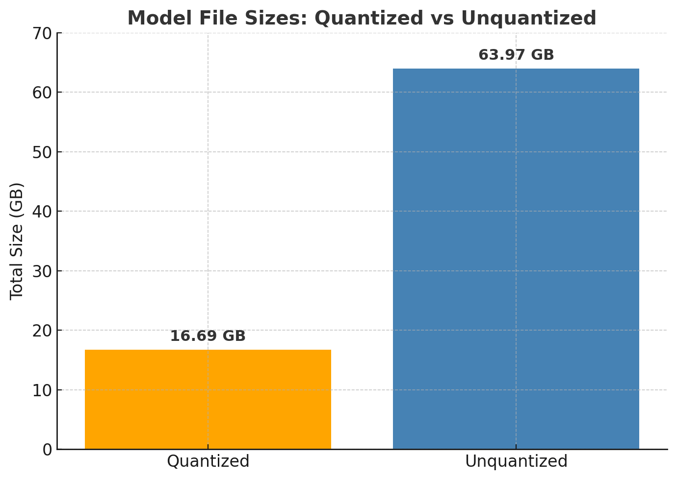 The compression resulted in model weights reduction from 64 Gb to 16.7 Gb.