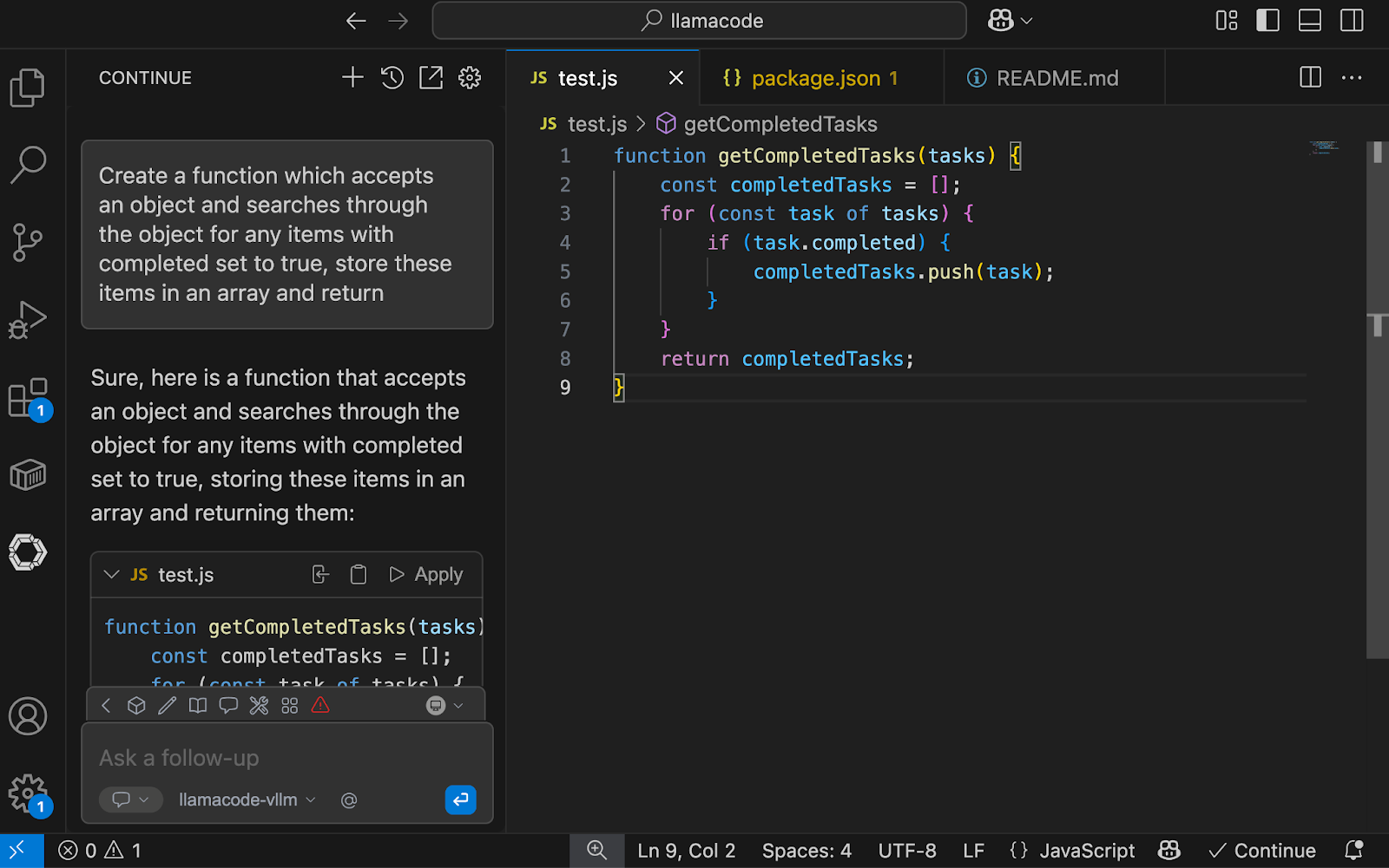 Once the model is deployed, it can be used by coding assistants such as continue.dev as shown in Figure 7. Configurations will vary, but once the coding assistant allows for configuration of OpenAI API-compatible models, you should be able to configure the assistant to use the model we've deployed to OpenShift AI.