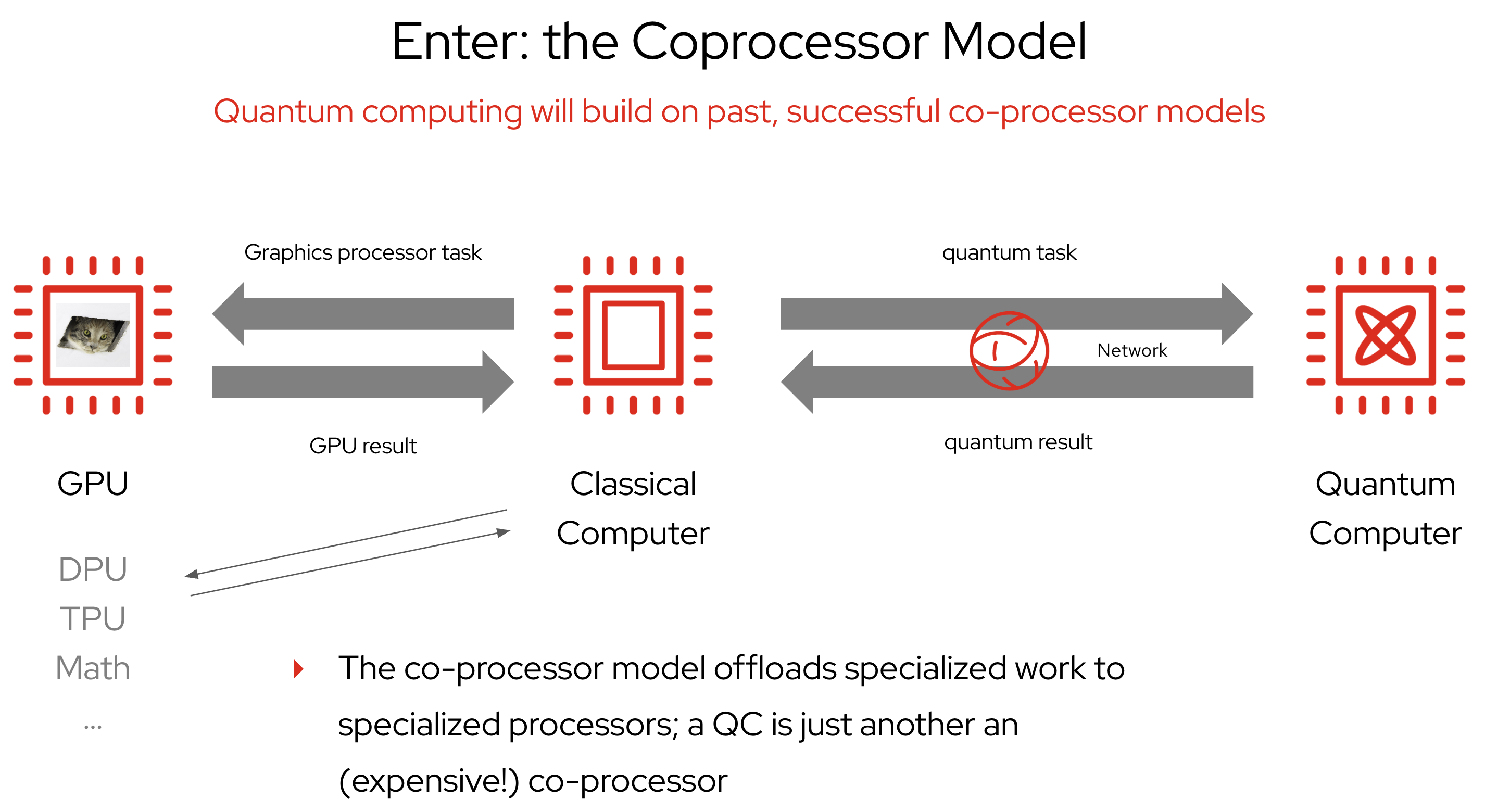 In the future, most systems will be hybrid. Your regular application will handle most tasks as usual. But when it encounters a problem that is too complex, it can call a quantum coprocessor to help solve that specific part, just like GPUs are used today to handle AI workloads.