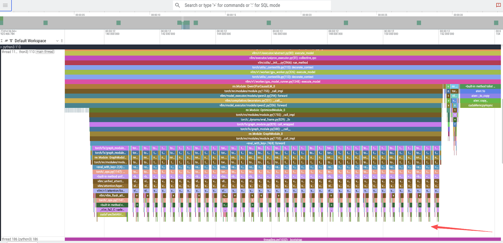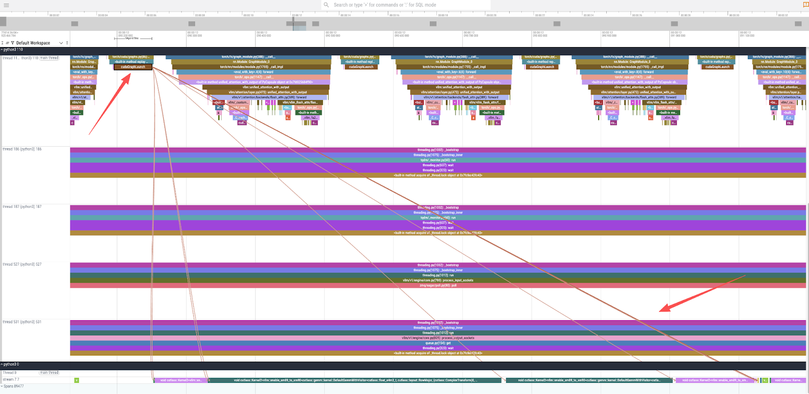 , we can inspect the underlying GPU operations (Figure 3). This reveals the invocation of several CUDA kernels responsible for the actual computation, including the highly optimizedcutlass::gemm