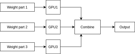 - Horizontal layer splitting: Each matrix multiplication is distributed across GPUs.
