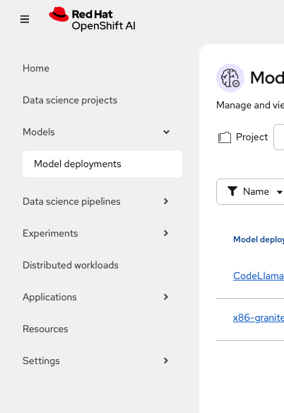 Figure 4: Navigate to the Model deployments overview in OpenShift AI. - Select the project in which you want to deploy the model.
