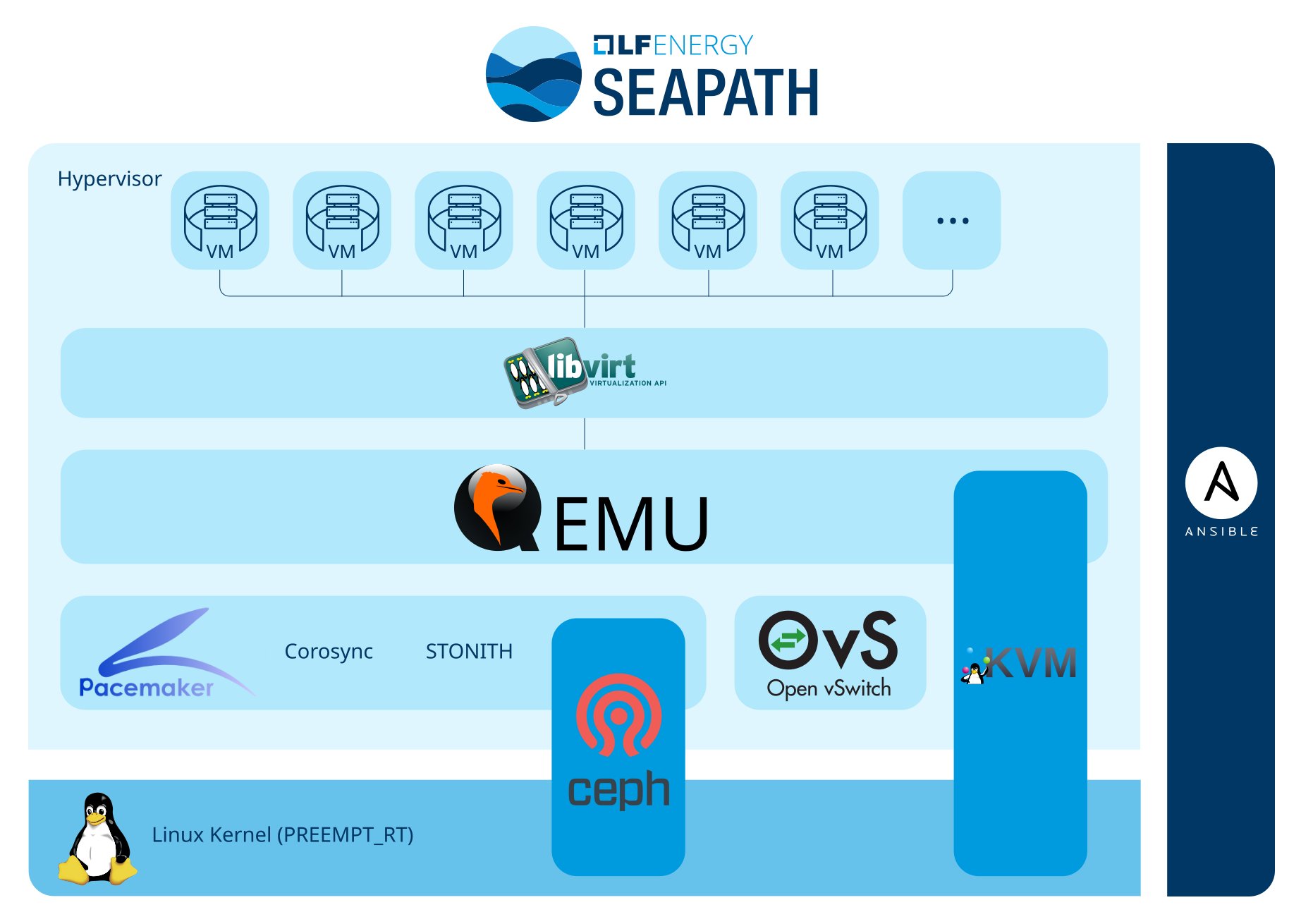 For utilities that require commercial support, SEAPATH aligns naturally with the RHEL ecosystem. RHEL provides the long life cycles, security focus, and stability required for critical infrastructure. Customers who want to install SEAPATH on RHEL can do so today. Because the project's foundation is a set of Ansible roles and playbooks that configure the underlying operating system and open source packages (such as CentOS Stream), RHEL can be successfully configured to run SEAPATH's core components.