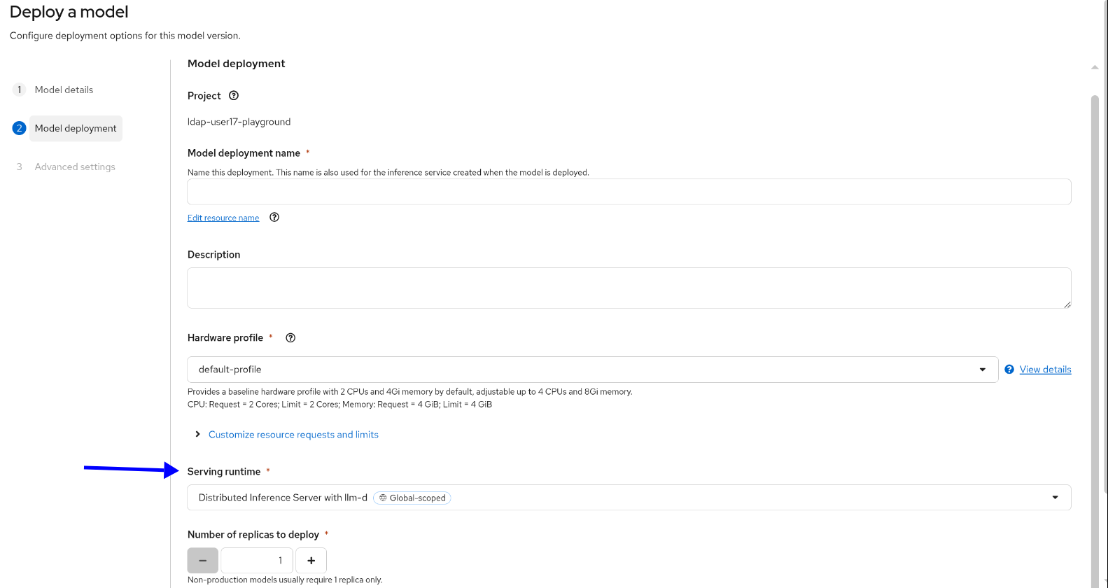Note that you can deploy MaaS only on distributed runtime. Select it from the Serving runtime drop-down (Figure 2).