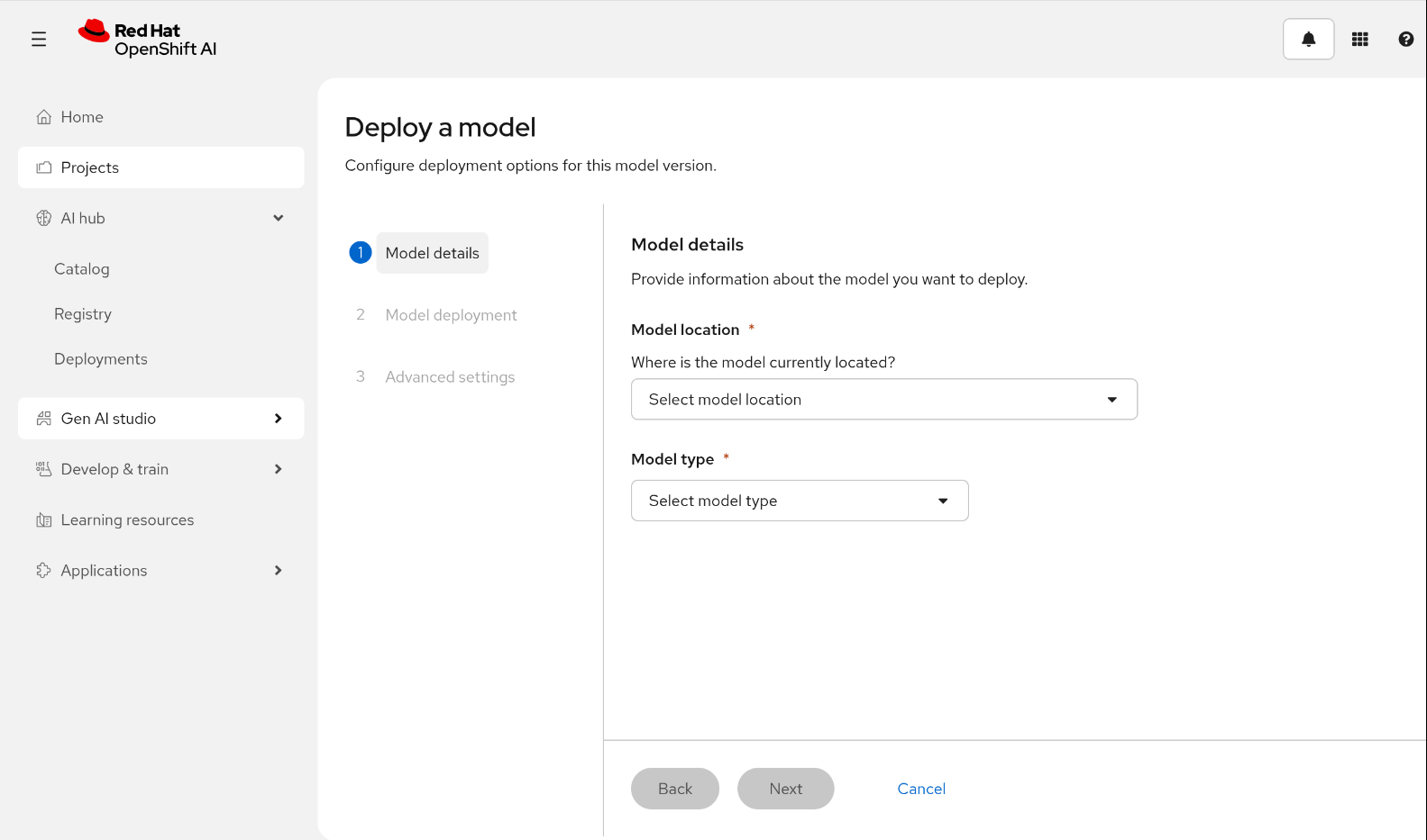 For your convenience you can deploy a model using the MaaS user interface (UI). For more information on how to enable the UI, refer to the official repo.