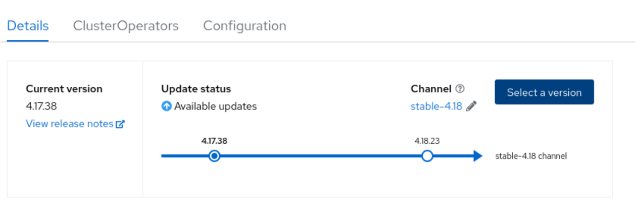 - Update the operators to the latest versions. Operators must be upgraded first to ensure they are compatible with the target OpenShift version.