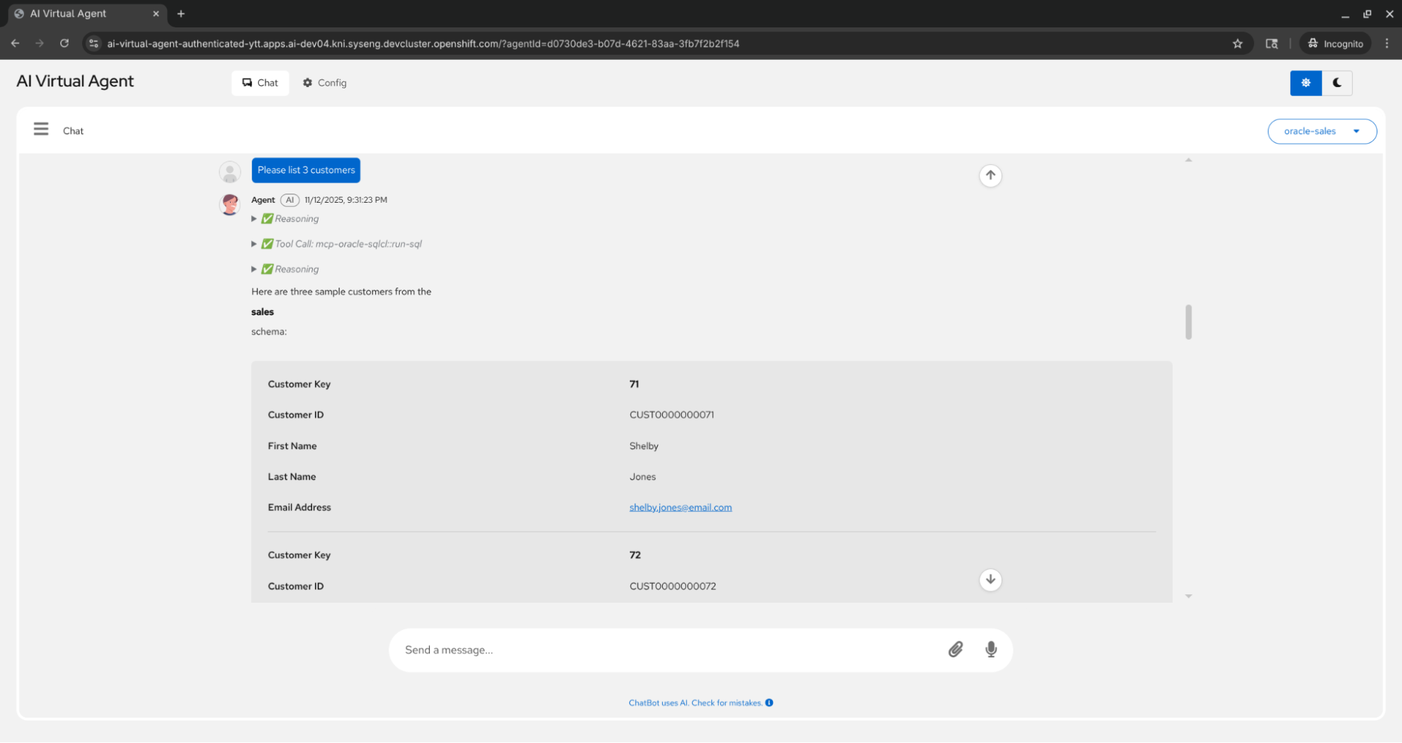 Demo of Red Hat AI Virtual Agent and Oracle MCP
