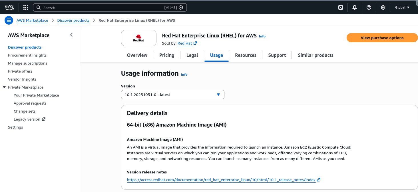1. Purchase a RHEL subscription from the AWS Marketplace