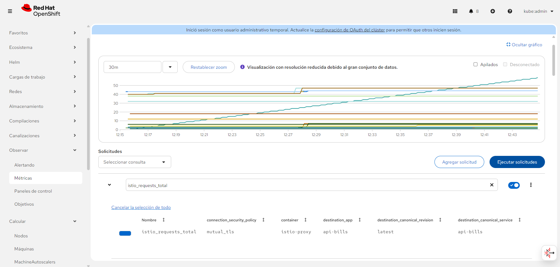 - Service mesh metrics: View detailed metrics about service-to-service communication through Istio's observability tools.