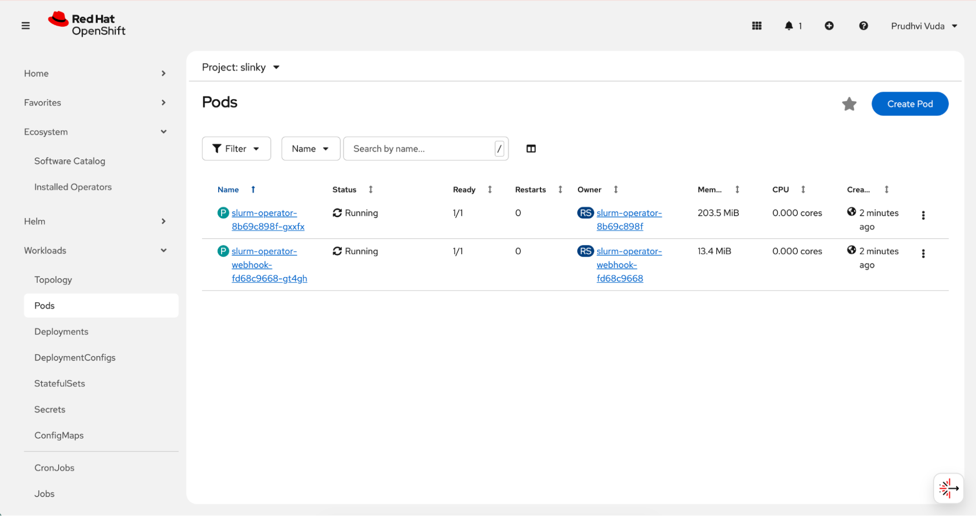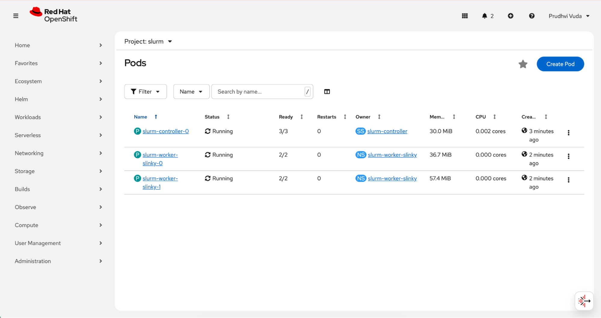 By running Slurm inside OpenShift, you preserve familiar tools like sbatch, squeue, and scontrol, while leveraging OpenShift’s networking, security, and scaling capabilities.