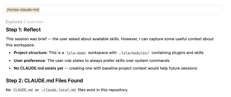 Installing claude-md-management -> /private/tmp/lola-demo