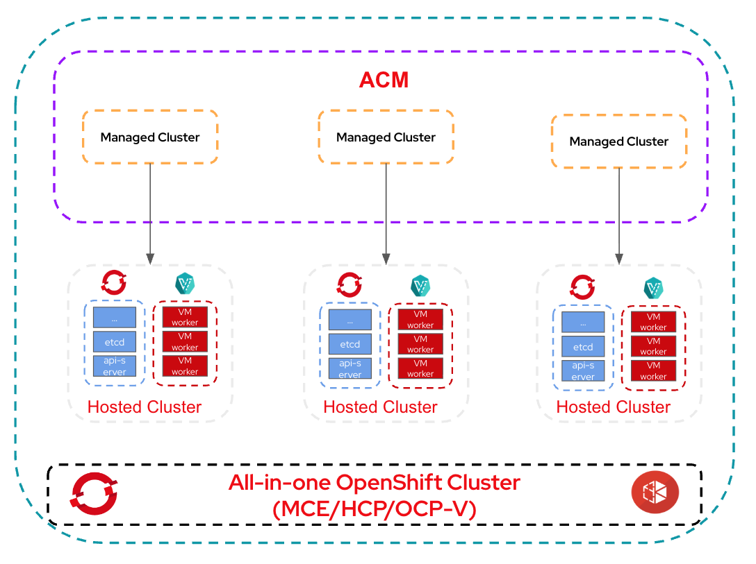 Enterprises adopting Red Hat OpenShift at scale increasingly look to hosted control planes (HCP) to reduce infrastructure costs, increase cluster density, and speed up cluster provisioning. When paired with KubeVirt which is an upstream project for Red Hat OpenShift Virtualization where cluster worker nodes run as virtual machines (VMs) while the control plane runs as lightweight pods. This dramatically compresses the hardware footprint and enables multi-cluster scale unattainable with traditional OpenShift installation.