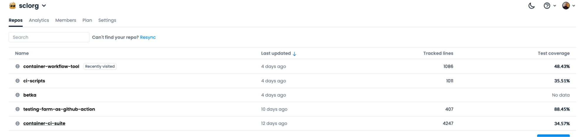 First, log into app.codecov.io. Then, you will see all the onboarded projects. Figure 1 is an example of our onboarded projects.
