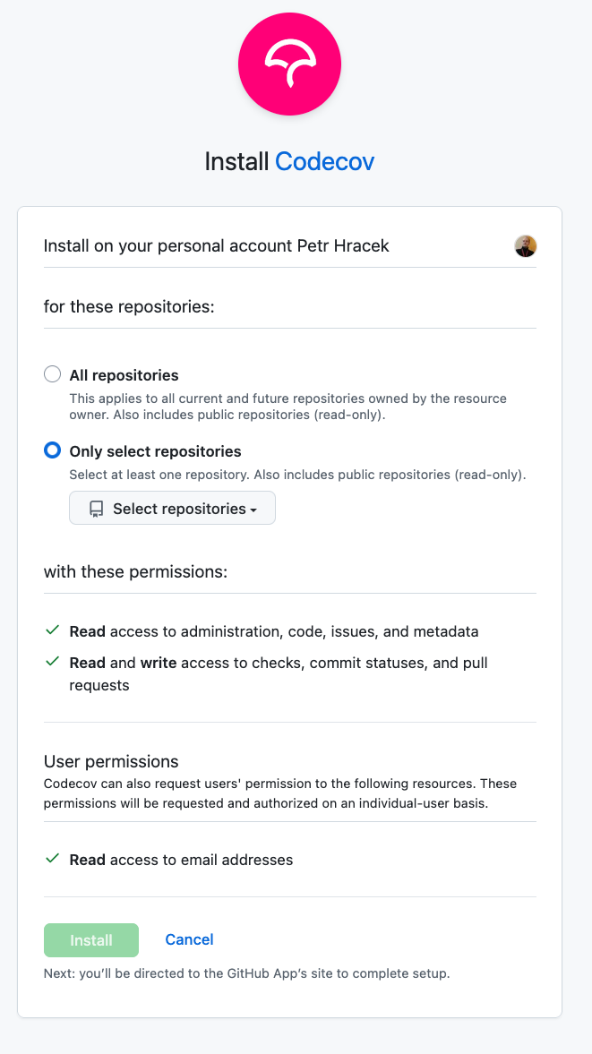 Figure 2 shows how to install CodeCov in your whole organization or in specific repositories.