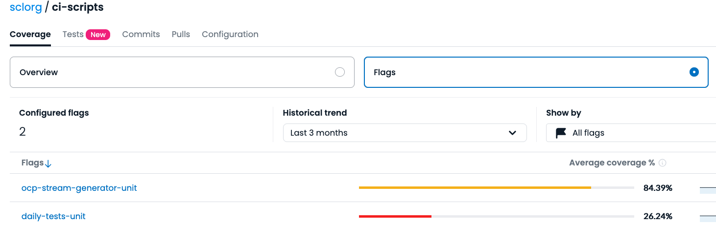 In case you do not see a message like this, look at the codecov web page and enable flags. Figure 4 shows how to enable flag analytics.